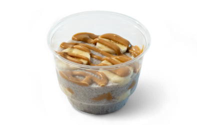 stay powered on-the-go with this heart-healthy snack of chia seeds, coconut milk, banana slices and a drizzle of peanut butter