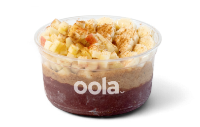 eat the ultimate breakfast bowl with açaí base, grandma’s granola, peanut butter, apple, banana, maple syrup, cinnamon