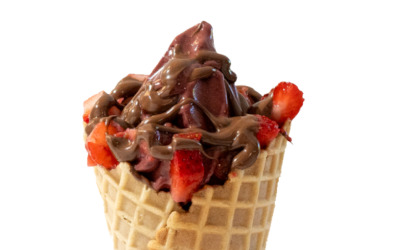 your choice of creamy açaí or pitaya soft-serve in a waffle cone with a hidden layer of banana + nut butter drizzle, topped with strawberries and nutella®