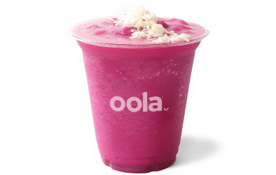 a thick, creamy blend of pitaya sorbet, orange juice, fresh pineapple, sprinkled with coconut flakes