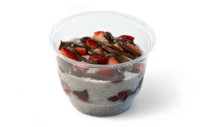stay powered on-the-go with this heart-healthy snack of chia seeds, coconut milk, strawberry slices and a drizzle of nutella®