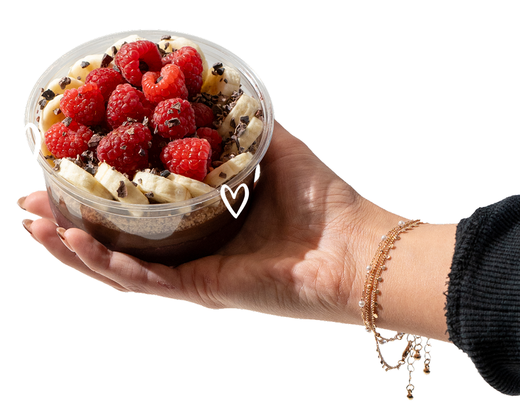 satisfy your ultimate sweet tooth with açaí base, nutella®, banana, strawberries, cacao nibs, almond dust